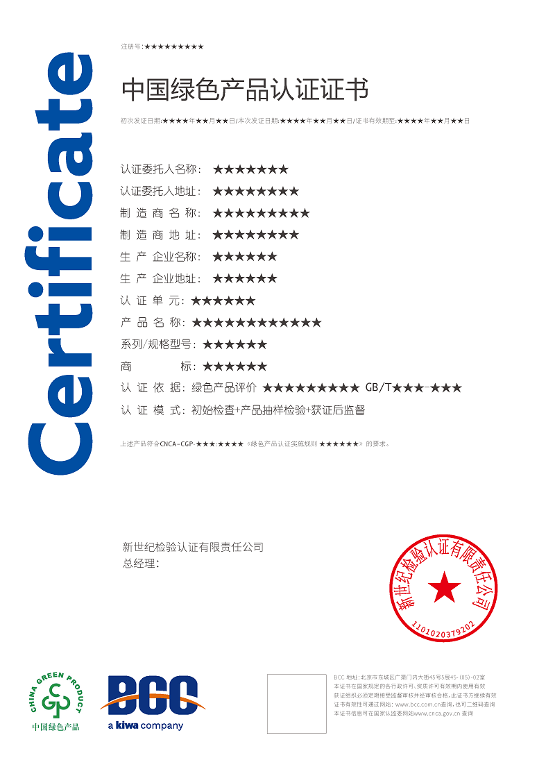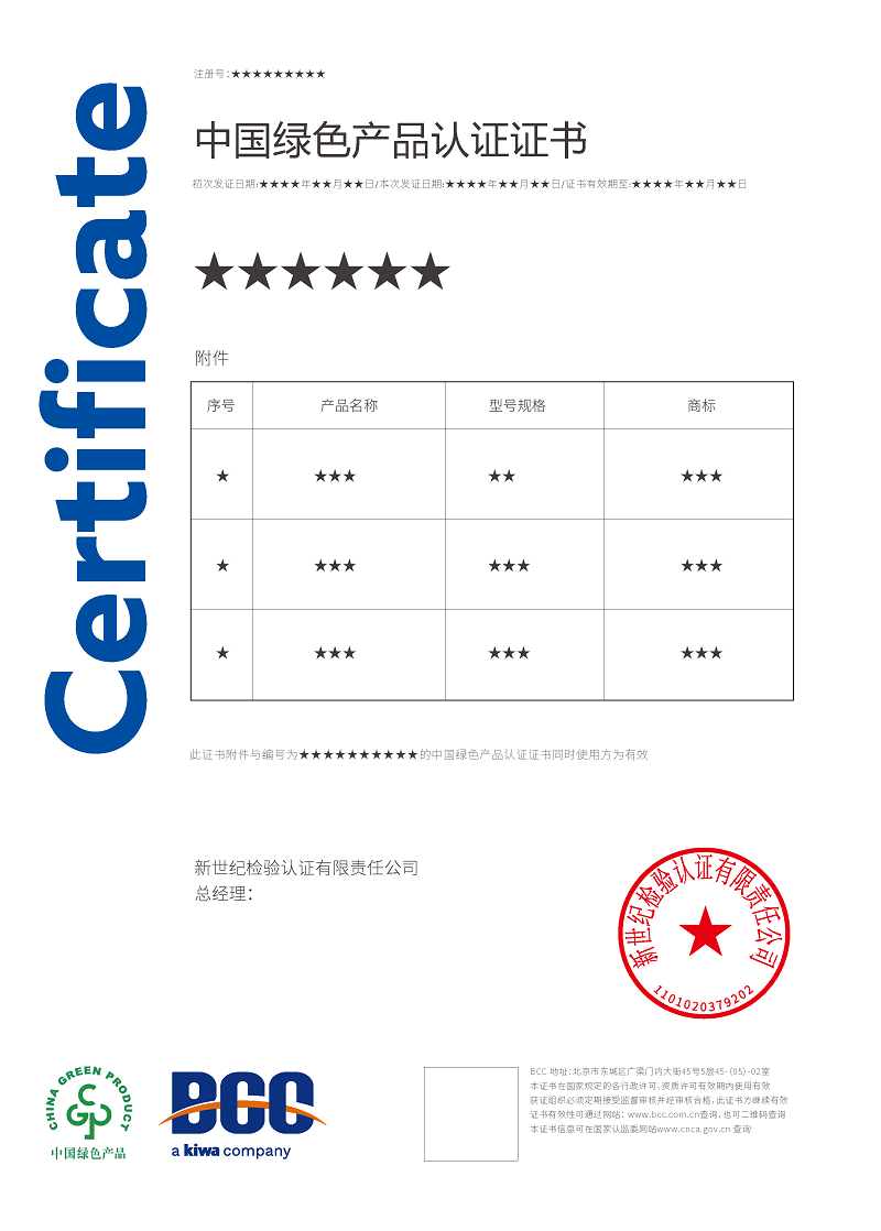 目前,BCC已順利通過國家認(rèn)證認(rèn)可監(jiān)督管理委員會(CNCA)審批,獲得了多項(xiàng)綠色產(chǎn)品認(rèn)證資質(zhì),包括: