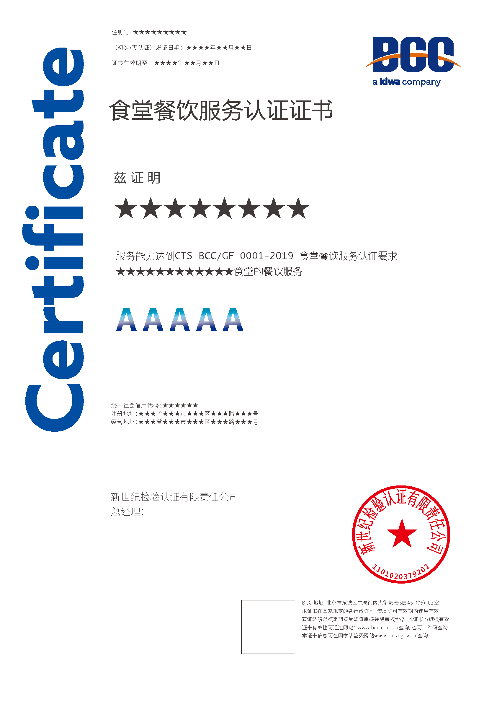 食堂餐飲服務(wù)認(rèn)證的依據(jù)是RB/T 309-2017《餐飲服務(wù)認(rèn)證要求》,以及新世紀(jì)內(nèi)部技術(shù)規(guī)范CTS BCC/GF 0001-2019《食堂餐飲服務(wù)認(rèn)證要求》。主要針對機(jī)關(guān)、學(xué)校等企事業(yè)單位供應(yīng)其內(nèi)部職工、學(xué)生等就餐的場所進(jìn)行認(rèn)證。