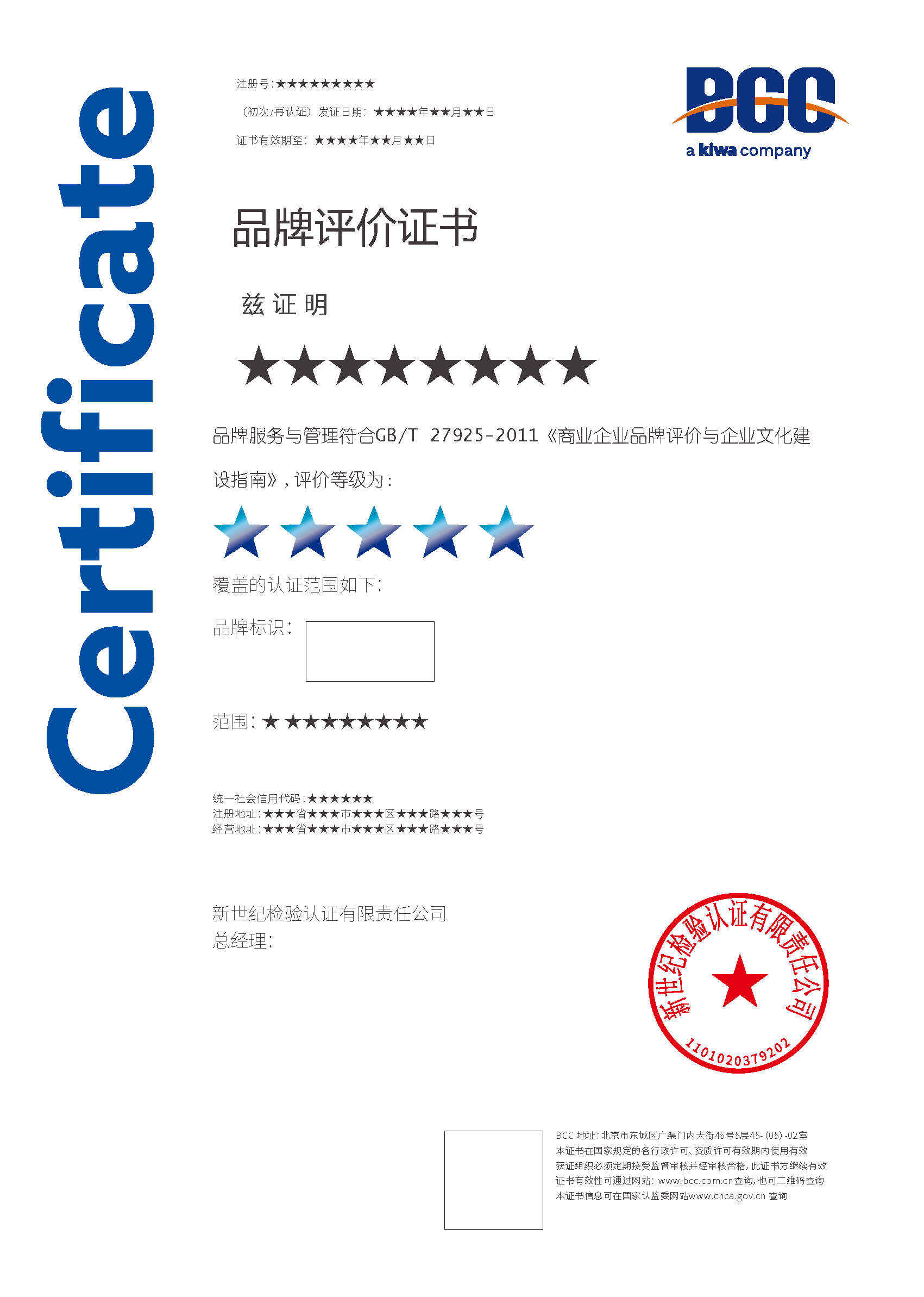 本頁(yè)涉及的認(rèn)證服務(wù)中均有對(duì)應(yīng)的《認(rèn)證實(shí)施規(guī)則》,BCC擁有其最終解釋權(quán)。任何組織及個(gè)人未經(jīng)BCC許可,不得以任何形式全部或部分使用(法律要求除外)認(rèn)證相關(guān)信息。如需獲取相關(guān)實(shí)施規(guī)則請(qǐng)用以下方式聯(lián)系獲?。弘娫挘?10-58579316 郵箱:fwjs@kiwa.cn