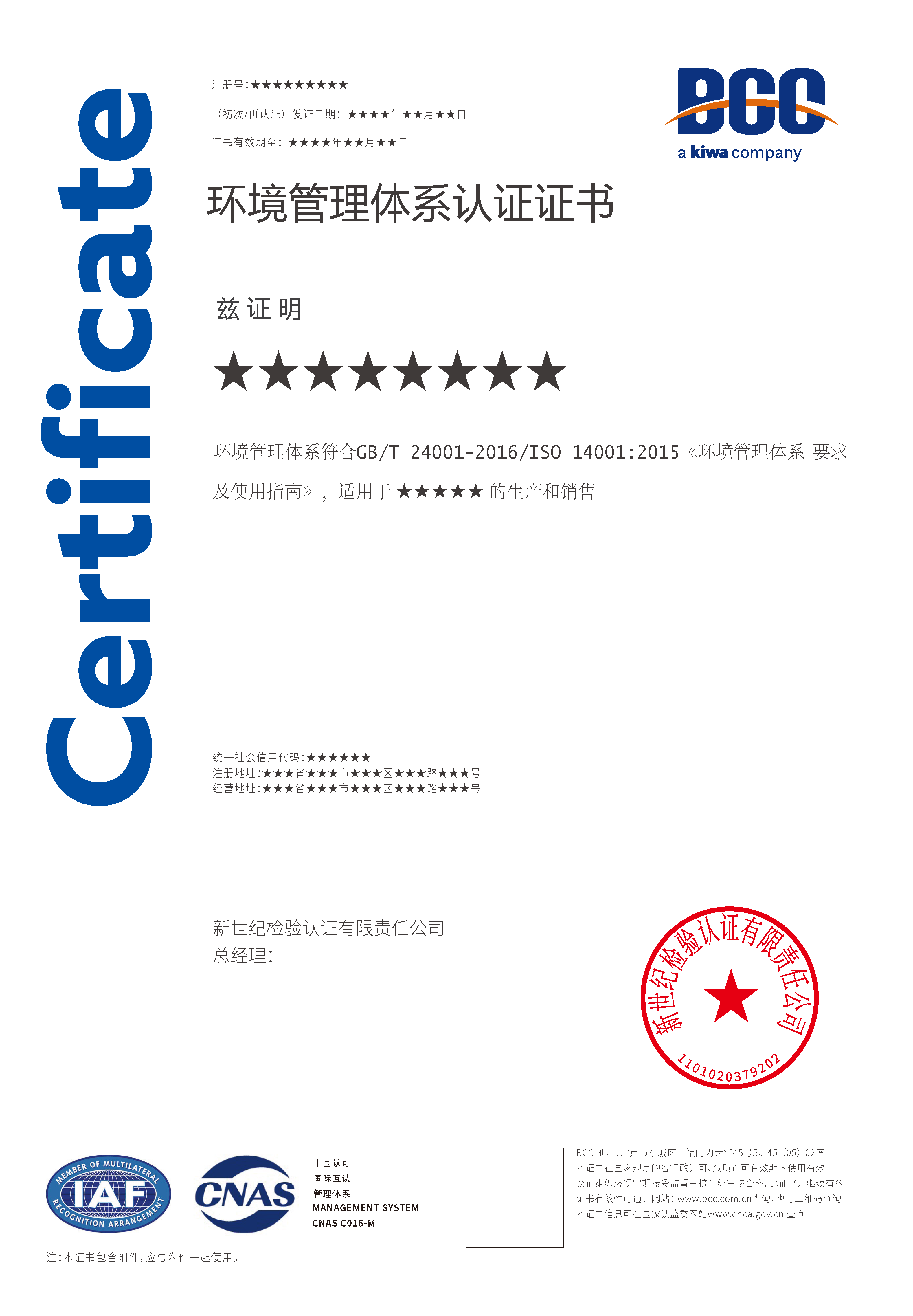 本頁涉及的認(rèn)證服務(wù)中均有對(duì)應(yīng)的《認(rèn)證實(shí)施規(guī)則》,BCC擁有其最終解釋權(quán)。任何組織及個(gè)人未經(jīng)BCC許可,不得以任何形式全部或部分使用(法律要求除外)認(rèn)證相關(guān)信息。如需獲取相關(guān)實(shí)施規(guī)則請(qǐng)用以下方式聯(lián)系獲?。弘娫挘?10-58579316 郵箱:fwjs@kiwa.cn