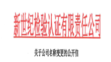 根據(jù)公司戰(zhàn)略發(fā)展的需要,經(jīng)市場(chǎng)監(jiān)督管理局核準(zhǔn),自2019年10月22日起,公司名稱由“新世紀(jì)檢驗(yàn)認(rèn)證股份有限公司”正式變更為“新世紀(jì)檢驗(yàn)認(rèn)證有限責(zé)任公司”。閱讀更多 -