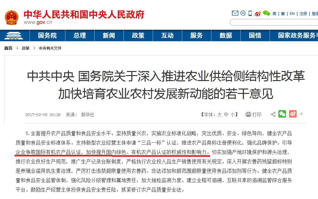 意見(jiàn)指出,“引導(dǎo)企業(yè)爭(zhēng)取國(guó)際有機(jī)農(nóng)產(chǎn)品認(rèn)證,加快提升國(guó)內(nèi)綠色、有機(jī)農(nóng)產(chǎn)品認(rèn)證的權(quán)威性和影響力。”