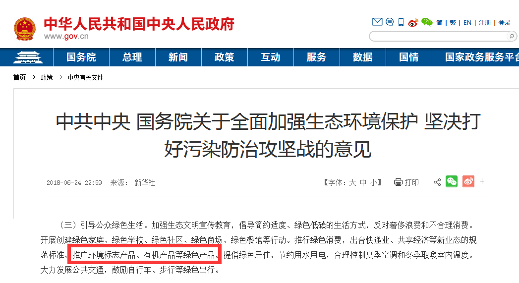 意見(jiàn)指出:推廣環(huán)境標(biāo)志產(chǎn)品、有機(jī)產(chǎn)品等綠色產(chǎn)品。