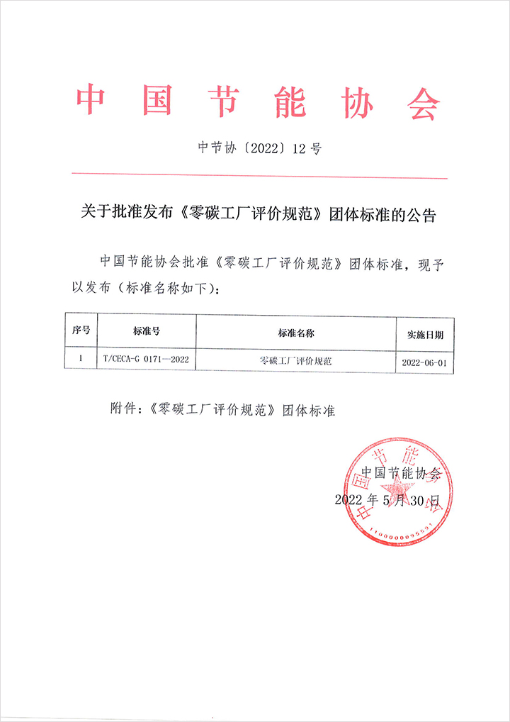 關(guān)于批準發(fā)布《零碳工廠評價規(guī)范》團體標準的公告