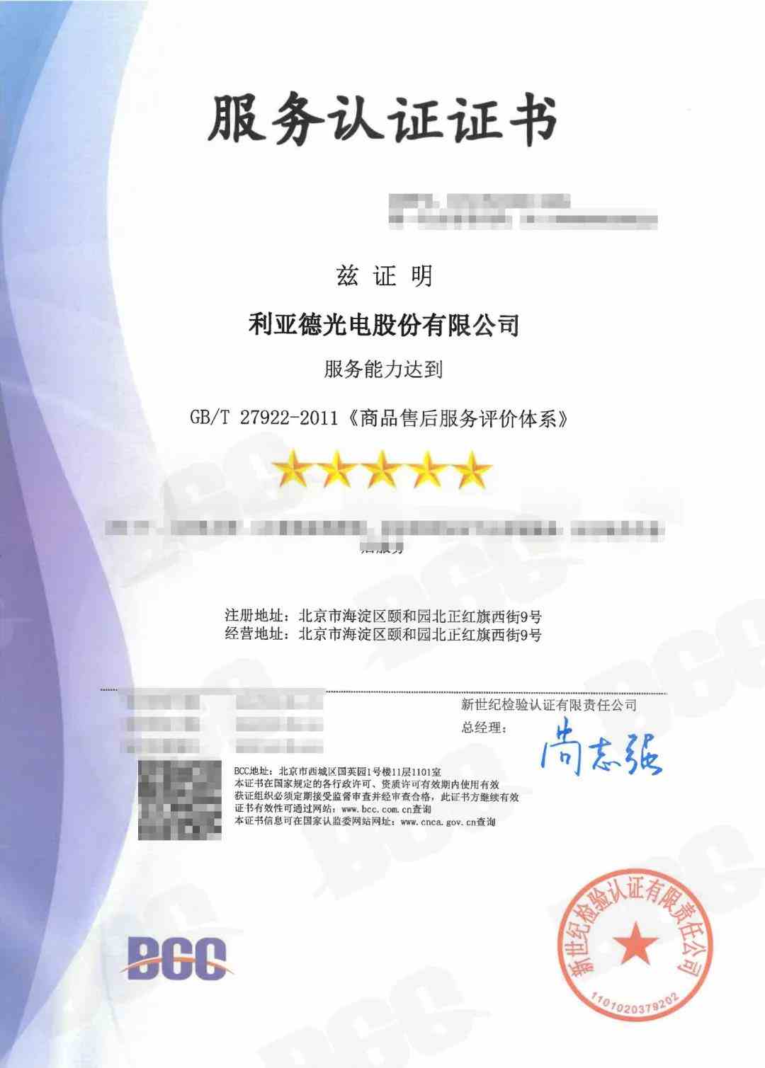 利亞德獲商品售后服務(wù)認(rèn)證,戰(zhàn)略布局家電市場(chǎng)!