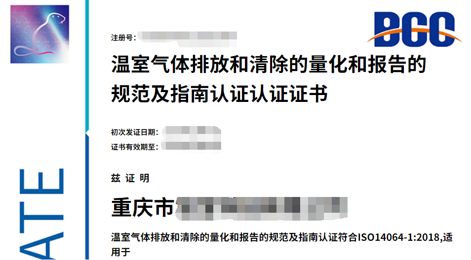 助力綠色轉型,BCC為重慶某公司頒發(fā)溫室氣體核查證書!
